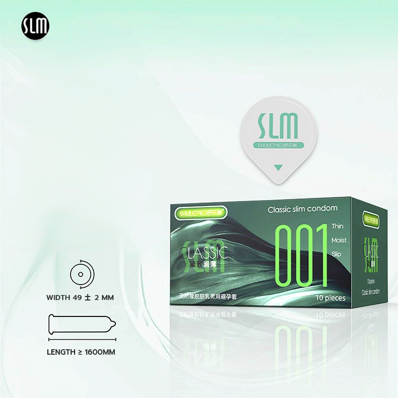 ถุงยางอนามัย SLM 001 คุณภาพพรีเมียม ออกแบบเพื่อความสบายและความรู้สึกที่เป็นธรรมชาติ ผลิตจากยางธรรมชาติคุณภาพสูง ผสมสารหล่อลื่นไฮยาลูโรนิก มีหลายรุ่นให้เลือกตามความต้องการ บรรจุ 10 ชิ้นต่อกล่อง