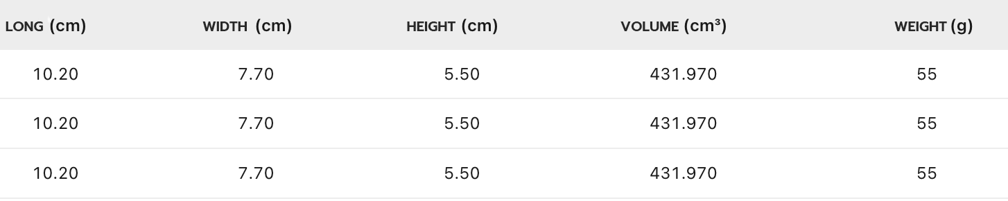 • ความกว้าง (Nominal Width): 49 ± 2 มม. หรือ 52 ± 2 มม. (ขึ้นอยู่กับรุ่น)