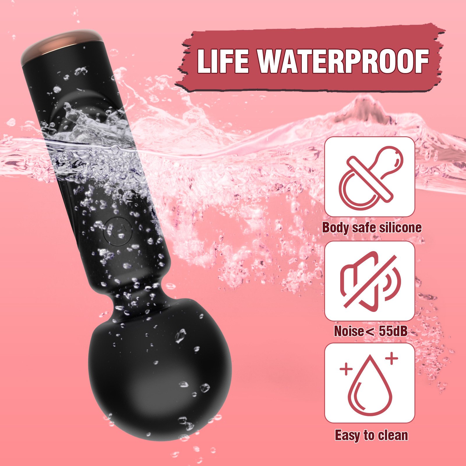 ผลิตจากซิลิโคนเกรดพรีเมียม ปลอดภัยต่อร่างกาย ผิวสัมผัสเรียบเนียน อ่อนโยน และทำความสะอาดง่าย ตัวเครื่องกันน้ำ เหมาะสำหรับใช้งานในห้องน้ำ และทำงานเงียบเพียงต่ำกว่า 55dB เพื่อความเป็นส่วนตัวสูงสุด